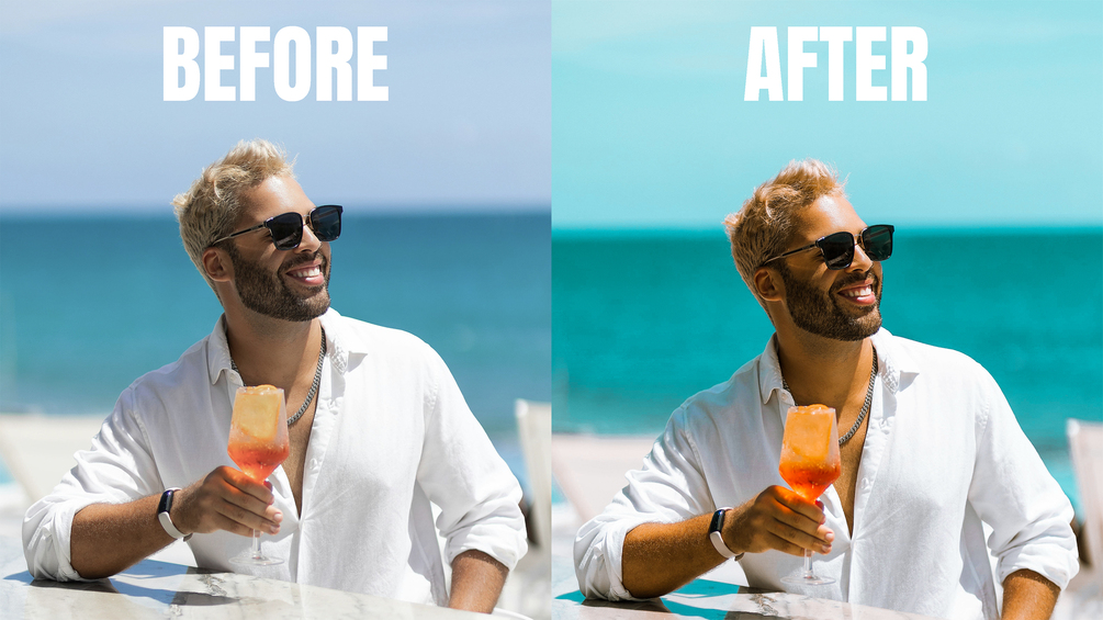 - Teal Summer: Enhance your summer photos with this cool-toned preset. It adds a beautiful teal tint to your blues, making skies and water pop, while warming up skin tones for a balanced, sunny look.